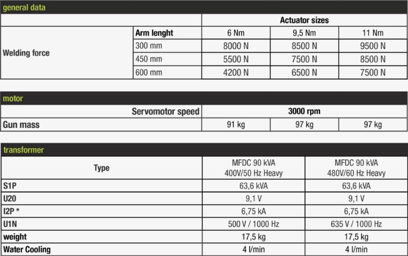 | Max. Weld Force | 350 daN, 460 daN, 470 daN, 580 daN, 600 daN |